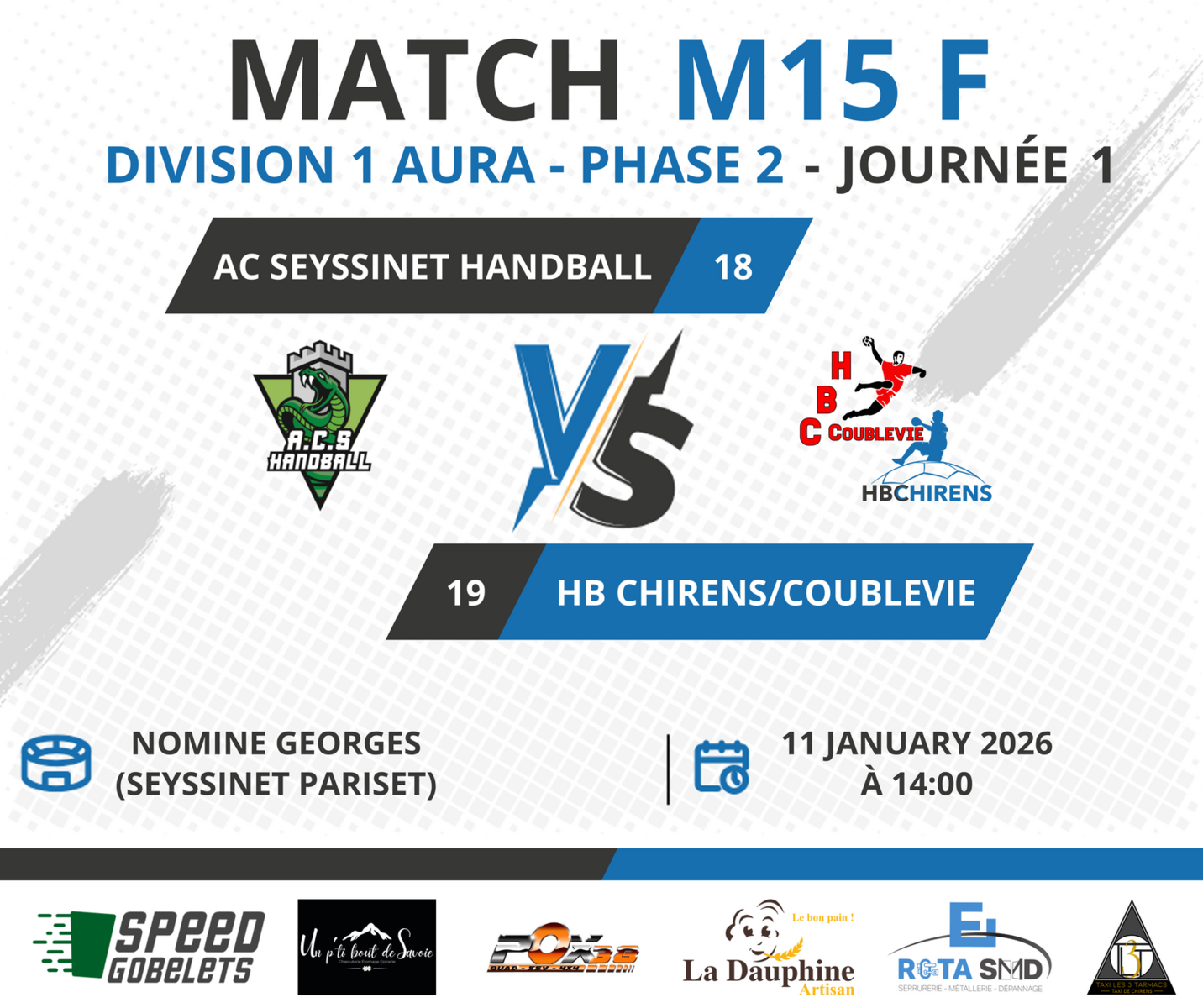 Gymnase Georges Nominé, 19 Av. du Général de Gaulle 38170 Seyssinet-Pariset - à 14h