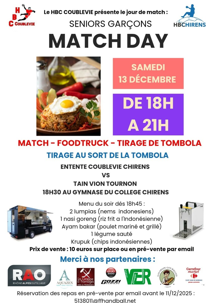 Le handball sera à la fête lors du match de l'équipe Senior contre Tain Vion Tournon. À cette occasion, le club du HBCCoublevie organise un événement inédit pour se retrouver avant la pause des vacances de fin d'année !!
